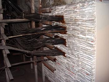 1.電纜堅井,用阻火網,阻火板或鐵板做支墊,將阻火包平鋪于墊上壘成隔層。